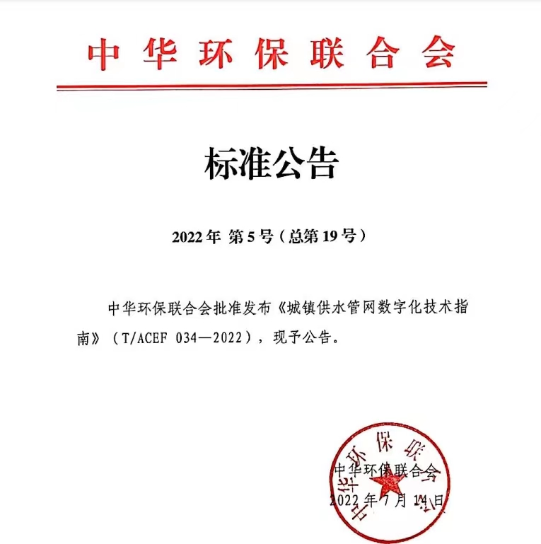 公司主持《城镇供水管网数字化技术指南》标准制订 助力供水行业数字化转型和智能化升级